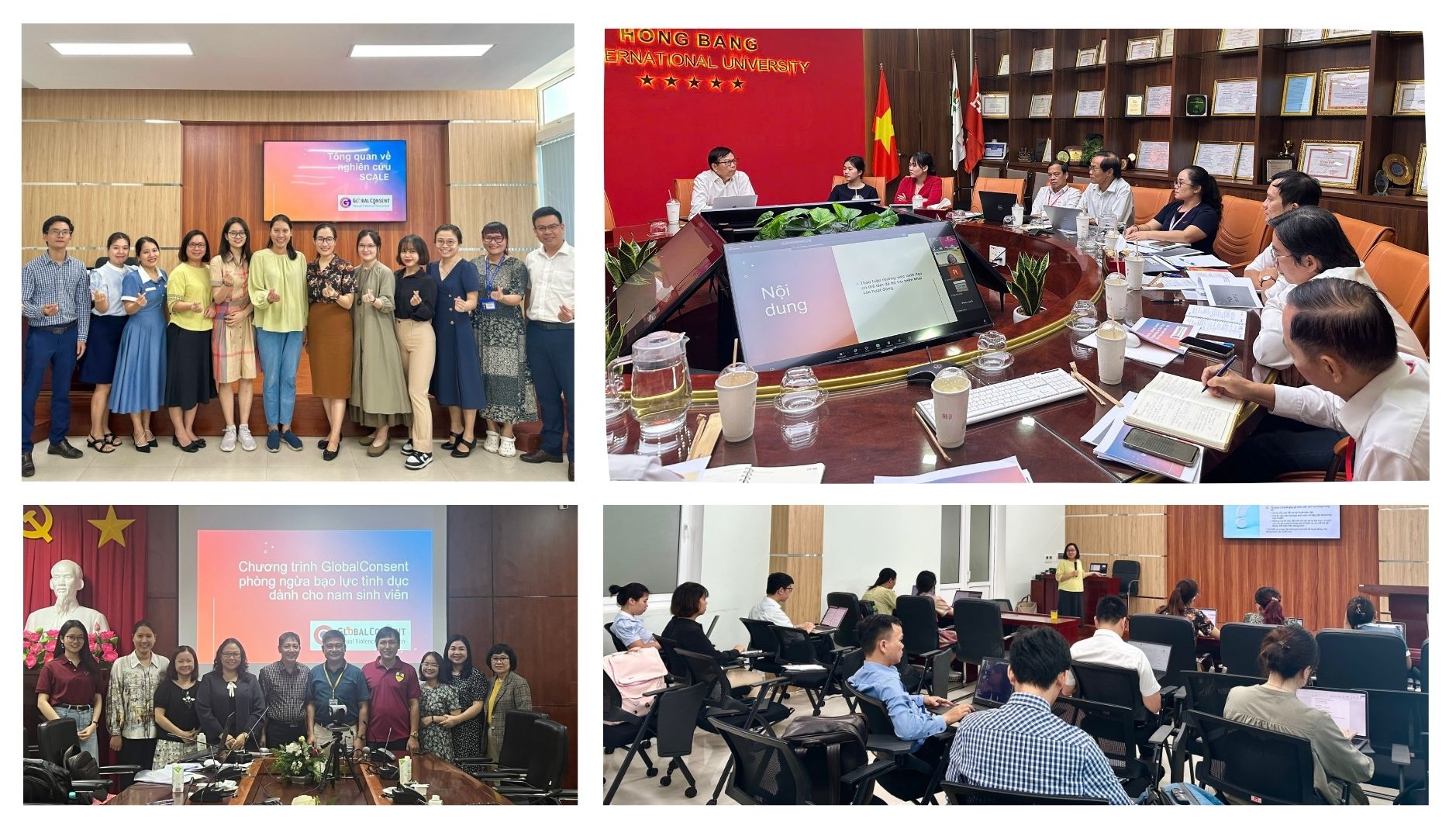 - Song song, các đợt khảo sát, phỏng vấn và thảo luận nhóm trước – trong và sau can thiệp được thực hiện với giảng viên, sinh viên, lãnh đạo và thành viên nhóm triển khai dự án tại các trường. Nhóm trường triển khai theo phương thức có các hoạt động củng cố, gia tăng sự tham gia sẽ có thêm các buổi chia sẻ thông tin và cập nhật tiến độ tới lãnh đạo, giảng viên và nam sinh viên tham gia chương trình. Kết quả nghiên cứu SCALE được mong đợi sẽ giúp thiết kế mô hình can thiệp hiệu quả để nhân rộng ra các trường đại học khác của Việt Nam.